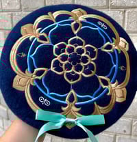 Designed as a tribute to Genshin Impact’s enigmatic Wanderer, this beret blends elegance, mysticism, and celestial-inspired details. Featuring delicate embroidery, shimmering gems, and a soft blue bow, this piece is perfect for cosplayers, anime lovers, and those who adore fantasy aesthetics.
